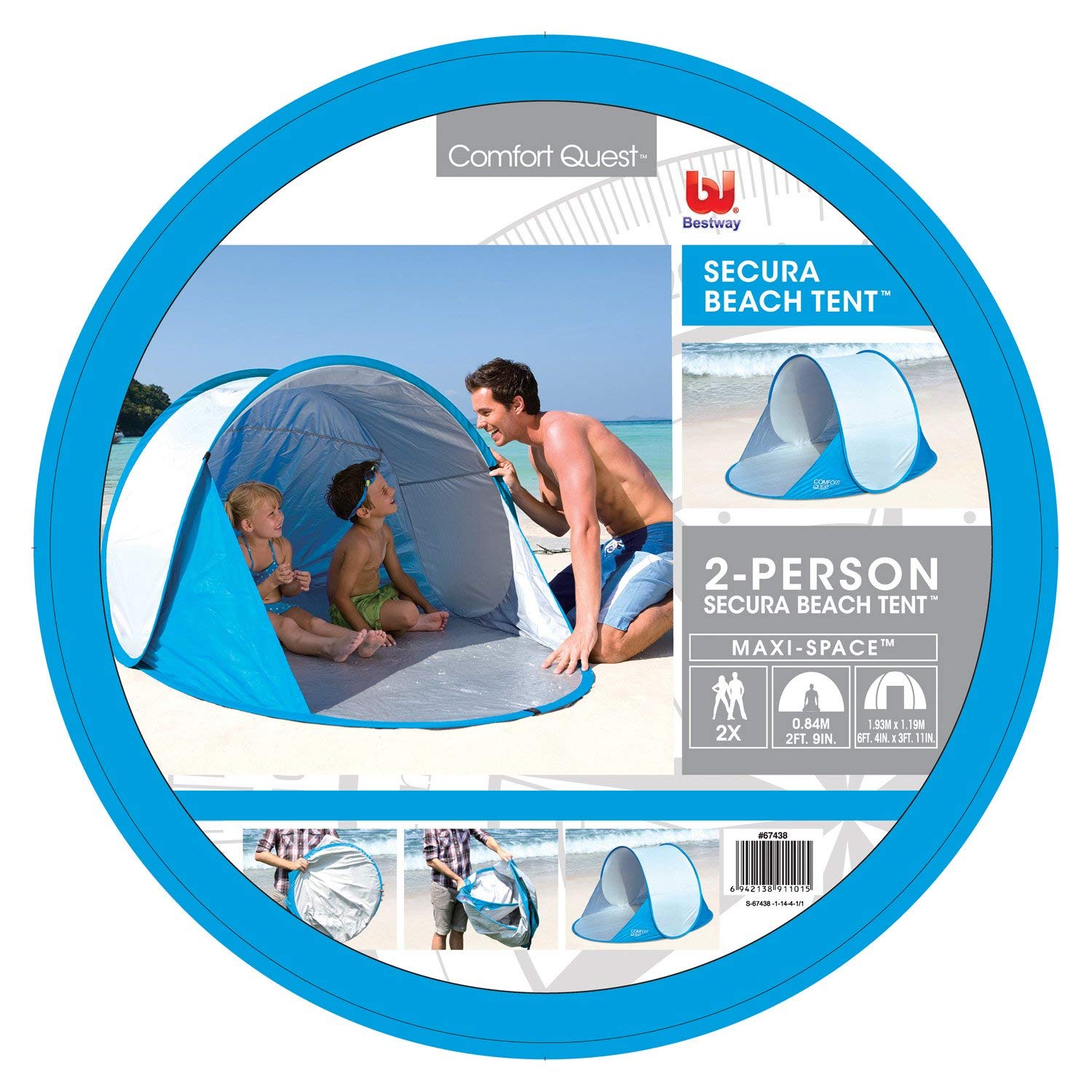 A Bestway Pavillo Secura Beach egy komfortos strandsátor, mely kellemes „árnyékot” / védelmet adhat a strandon. Könnyű szerkezetének és „Pop Up” technológiájának köszönhetően, pillanatok alatt felépíthető és lebontható. Természetesen a sátrat tartó tokkal együtt szállítjuk, így egyszerű tárolni és hordozni is. Megfelelő 40+-os UV védelemmel ellátott anyag, mely aljzata 120g/m2 PE anyagból készült. 192x120cm-es mérete kellemes teret biztosít.
