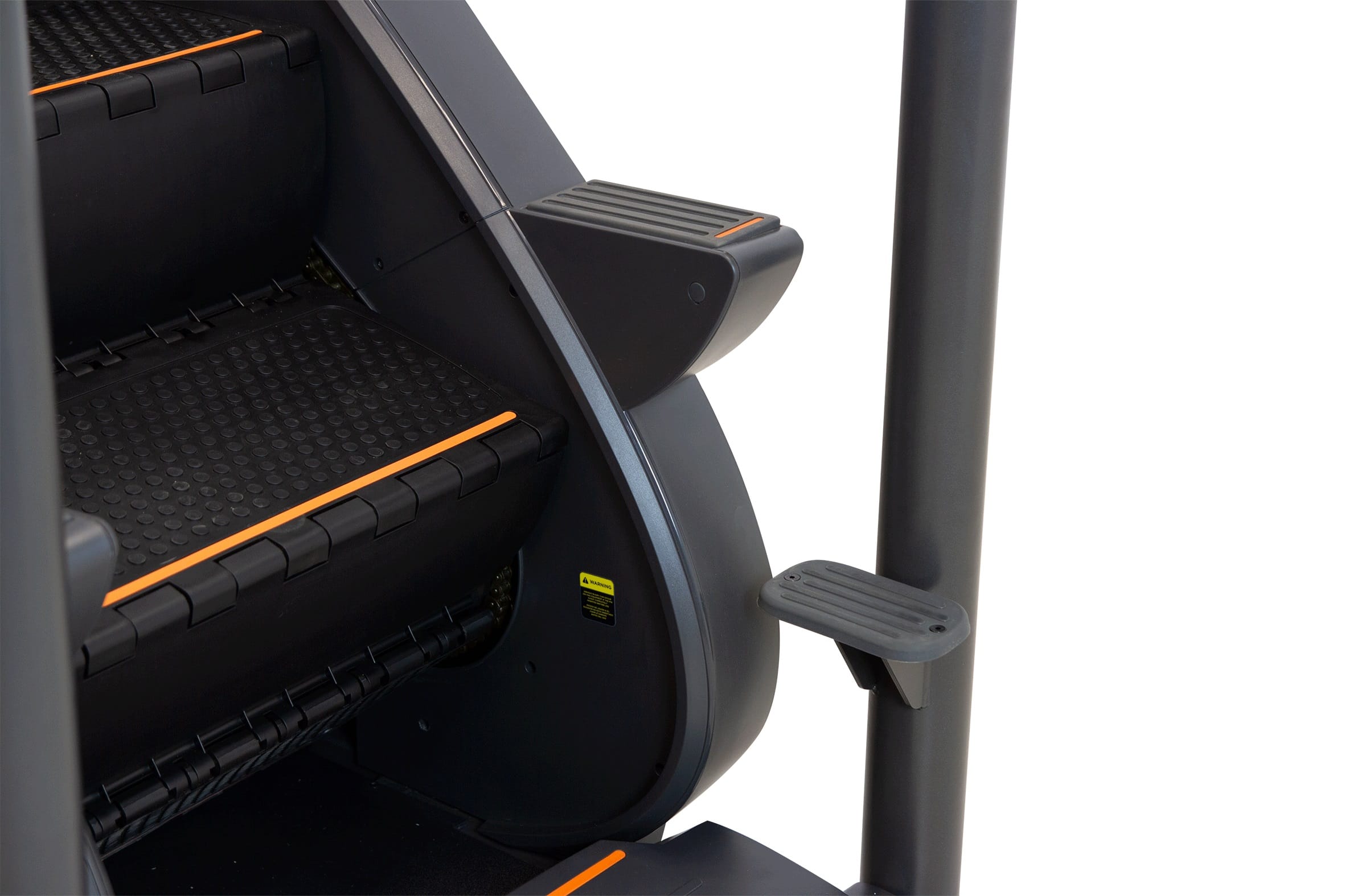 A gép nagy méretű, csúszásmentes lépcsőfokokkal van ellátva, amelyek biztonságos mozgást garantálnak edzés közben. Az ergonomikusan kialakított kapaszkodók lehetővé teszik a különböző edzéspozíciókat, így a felhasználók mindig kényelmesen és biztonságosan tudnak edzeni. A változtatható sebességtartomány révén mindenki megtalálja a saját szintjének megfelelő intenzitást – az állóképességi edzéstől a nagy intenzitású intervallumig.