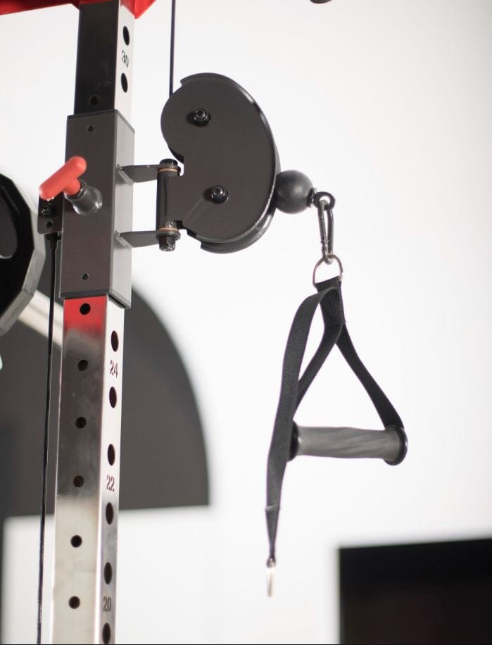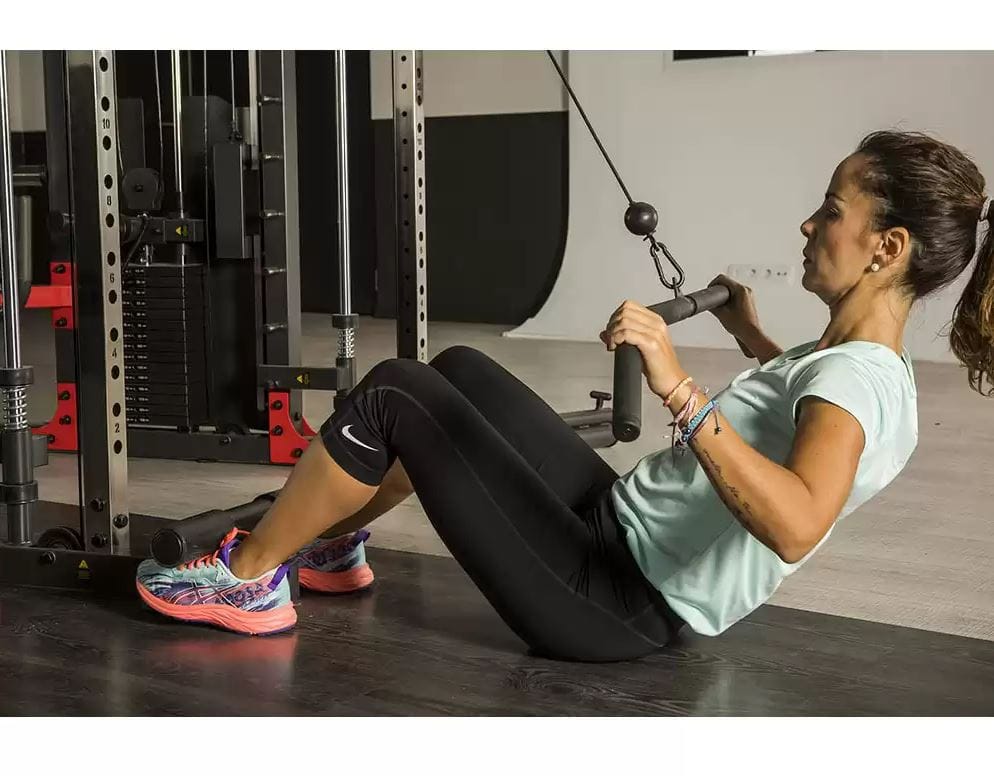 A beépített Smith mechanika stabil, kontrollált mozgáspályát biztosít, ami különösen előnyös nagyobb súlyokkal végzett alapgyakorlatoknál, például guggolásnál vagy fekvenyomásnál. A kétoldali, egyenként 90 kg-os súlyblokkok lehetővé teszik a precíz, kiegyensúlyozott csigás gyakorlatokat, így a felső- és alsótest izomcsoportjai egyaránt hatékonyan fejleszthetők.