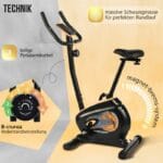 A Delta szobakerékpár manuálisan állítható pedálozási ellenállást kínál, amelyet 8 fokozatban állíthat be személyes edzettségi szintjéhez. Ez azt jelenti, hogy mindig megtalálhatja az edzéséhez szükséges optimális terhelést, függetlenül attól, hogy kezdő vagy haladó felhasználó. A felhasználóbarát számítógép megjeleníti az összes fontos edzésadatot, például az időt, a sebességet, a távolságot, a teljes távolságot, az elégetett kalóriákat és a pulzusszámot, míg a szkennelési funkció átfogó vezérlést biztosít.