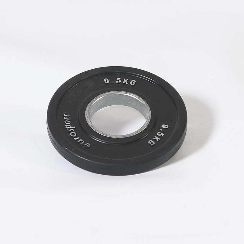 Eurosport – Gumis súlytárcsa 50mm/0,5kg – 0,5kg mely 50 mm-es belső furattal rendelkezik. A belső furat alumínium gyűrű, mely segítségével nem kopnak el a tárcsák és nem fognak lötyögni a rúdon.