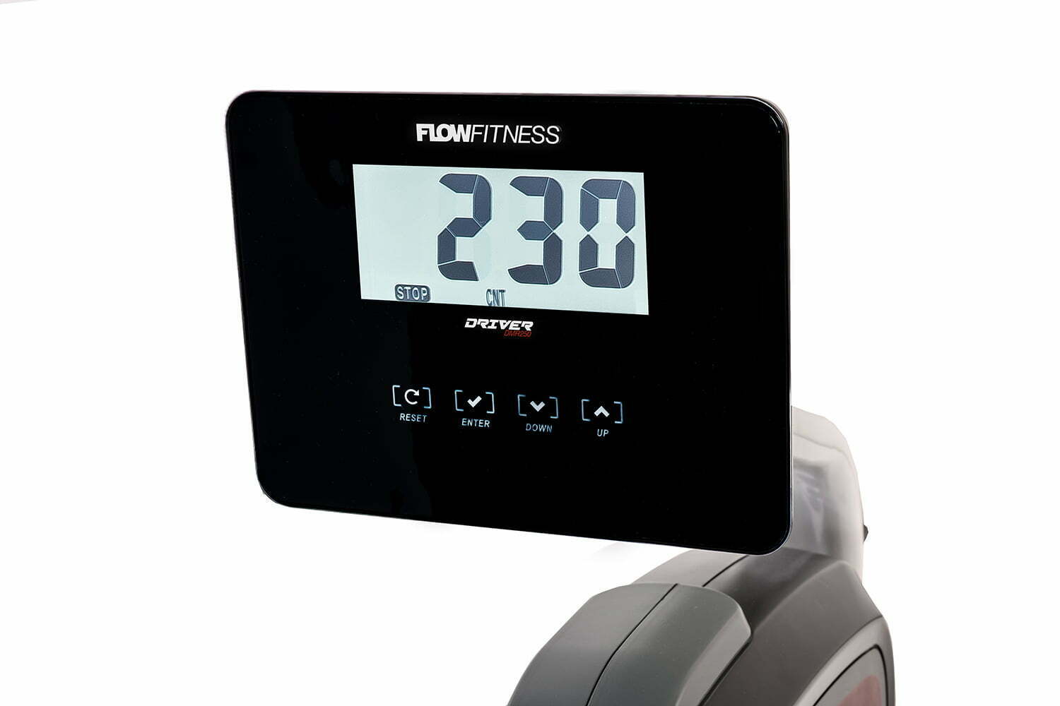 A Flow Fitness Driver DMR250 evezőpad egy kiváló minőségű evező mely hatékony zsírégetésre és izomépítésre egyaránt. Az evezőgépet a Holland piacról szállítunk hazánkba. Mágnesfékes rendszerrel ellátott evező, melyet 8 fokozatban tudunk szabályozni. Az evezőpad csúcsminőségű golyóscsapágyazott rendszerrel van ellátva, mely biztosítja a sima, egyenletes és halk mozgást a használat közben. Extra hosszú vezetősínen fut az ülés, így akár 205cm magas emberek is kényelmesen használhatják az evezőt. LCD kijelzőjén minden fontos adatot láthatunk, melyre az edzéseink alatt szükségünk lehet. Kompatibilis a mellkasi öves pulzusmérőkkel (5Khz – kódolatlan), így pontos pulzusmérést biztosíthatunk magunknak.