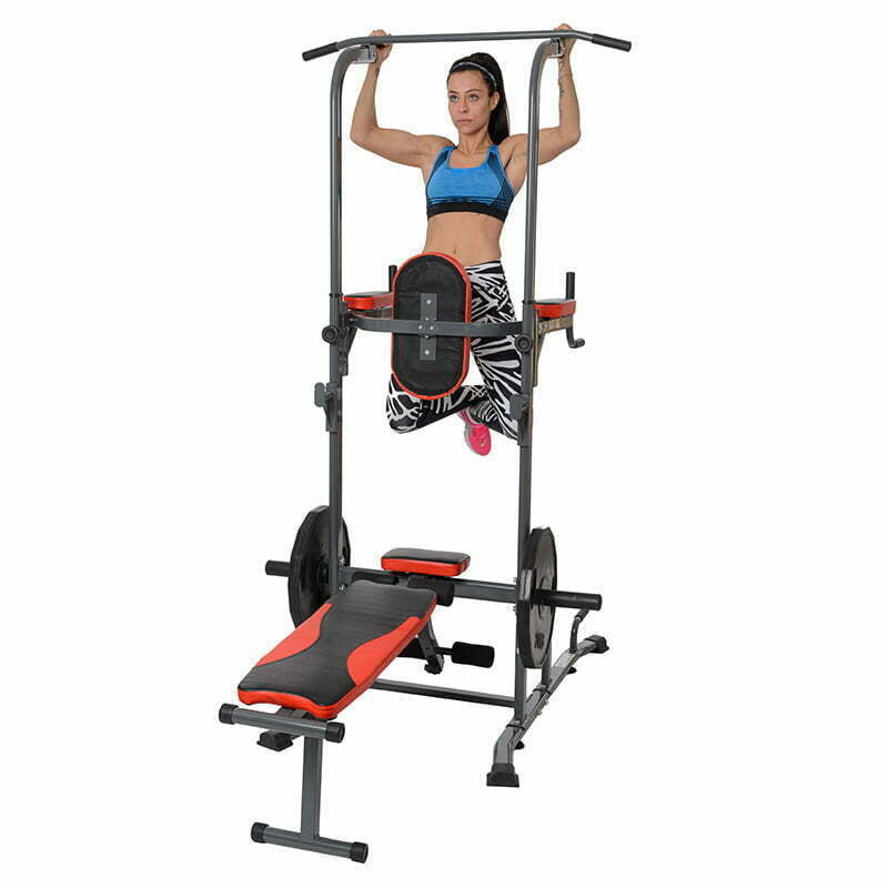 A felhasználónak van egy rúdtartó a fekvenyomásokhoz, a fekvőtámaszkeret, a súlyemelő pad és a húzódzkodó, tolózkodó, hasprés, amely lehetővé teszi a gyakorlatok különböző típusú markolatokkal történő elvégzését. A teljes készlet garantálja, hogy edzése során az összes hátizmot, karokat, mellkast és hasat aktiválja.