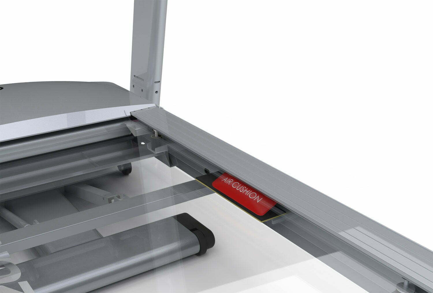 Az Exkluzív Air Train technológia egy egyedülálló légpárnás ízületkímélő rendszer, mely a futólap alatt található és változtatható csillapítást biztosít futás közben. A légpárnák keménységének állítása 10 valódi Észak-Amerikai, Európai és Ázsiai versenypálya alapján készült. Az egyedi vezérlésnek köszönhetően, a légpárnák keménységét, személyre szabhatja, így olyan keménységű futópadon fut, amilyen az Ön ízületeinek tökéletes. A keménységeket összeállíthatja, mint ha szabadtéri futópályán, aszfalton, fűben, salakos pályán, vagy földúton futna. Élvezze a teljesen új edzést 3D-ben!