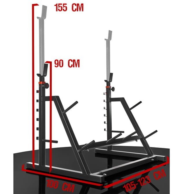 A Kelton HS9 multifunkciós állvány egy hihetetlen teherbírással rendelkező termék. Teherbírását 500kg-ig tesztelték, így a legnehezebb próbálkat is kibírja! Erős acél vázszerkezetből készült, mely 50x50x2mm-es szelvényekkel rendelkezik. Állítható magassággal rendelkezik, mely 8 fokozatban állítható, illetve a termék szélessége is állítható 4 fokozatban, így több gyakorlathoz és rúdhoz használhatjuk. A terméken helyet kapott 8db súlytartó tüske és 6db pihenő szint. Igényes megjelenésű termék, igényes fedvényekkel és dugókkal.