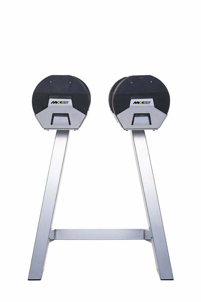 Az MX Select MX-55 állítható kézi súlyzószett egy profi súlyzó, mely egy ilyen tartományú fix súlyzószett árának töredékéért kapható. Ráadásul ezt a szettet állvánnyal együtt szállítjuk. A súlyzószettet 4,5-24,9kg-ig állíthatjuk. Beállítása pofon egyszerű, hiszen csak el kell fordítanunk a színkódolt állító gombot, majd benyomni azt és máris a megfelelő általunk kiválasztott súlyzót használhatjuk. A szettben a súlyzók párban találhatóak. A súlyzók fogantyúja rovátkolt, így csúszásmentes. Az állványon találhatunk egy táblázatot, mely mutatja minden egyes szinthez tartozó súly értéket. Nagy előnye, hogy kis helyen elfér, mindösszesen 0,25m2 helyigényre van szüksége, míg egy fix egykezes szettnél jóval többről beszélünk!