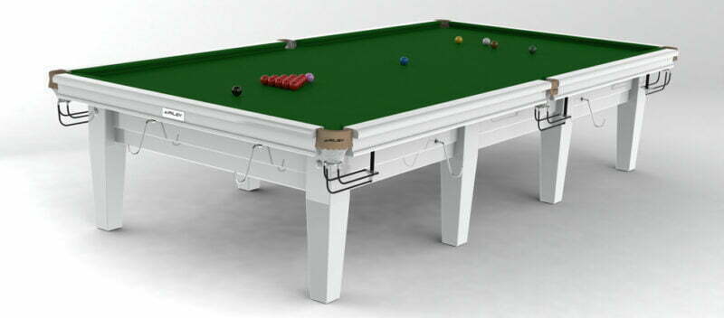 A Riley Grand White snooker asztal a világ egyik legjobb professzionális snooker asztala! Extra erős kivitel, mely csakis a legjobb minőségű anyagok felhasználásával készül! Az asztallapja szintén a legjobb minőségű klubszintű palakőből készül, melyet lézerrel vágnak pontos méretre. 5 részes palakő az asztallap, amin egy szintén magas minőségű standard Angol posztó található. A csomag tartalmazza a posztót is! Riley prémium fa párna frízek és Riley „Northern Rubber” gumi párnák biztosítják az egyenletes golyó visszapattanást! A Riley Grand snooker asztal, tulajdonképpen ugyanaz mint a Riley Aristocrat asztal, azzal a különbséggel, hogy a lábazata négyzetes. Modern dizájn és elegancia jellemzi ezt az asztalt!