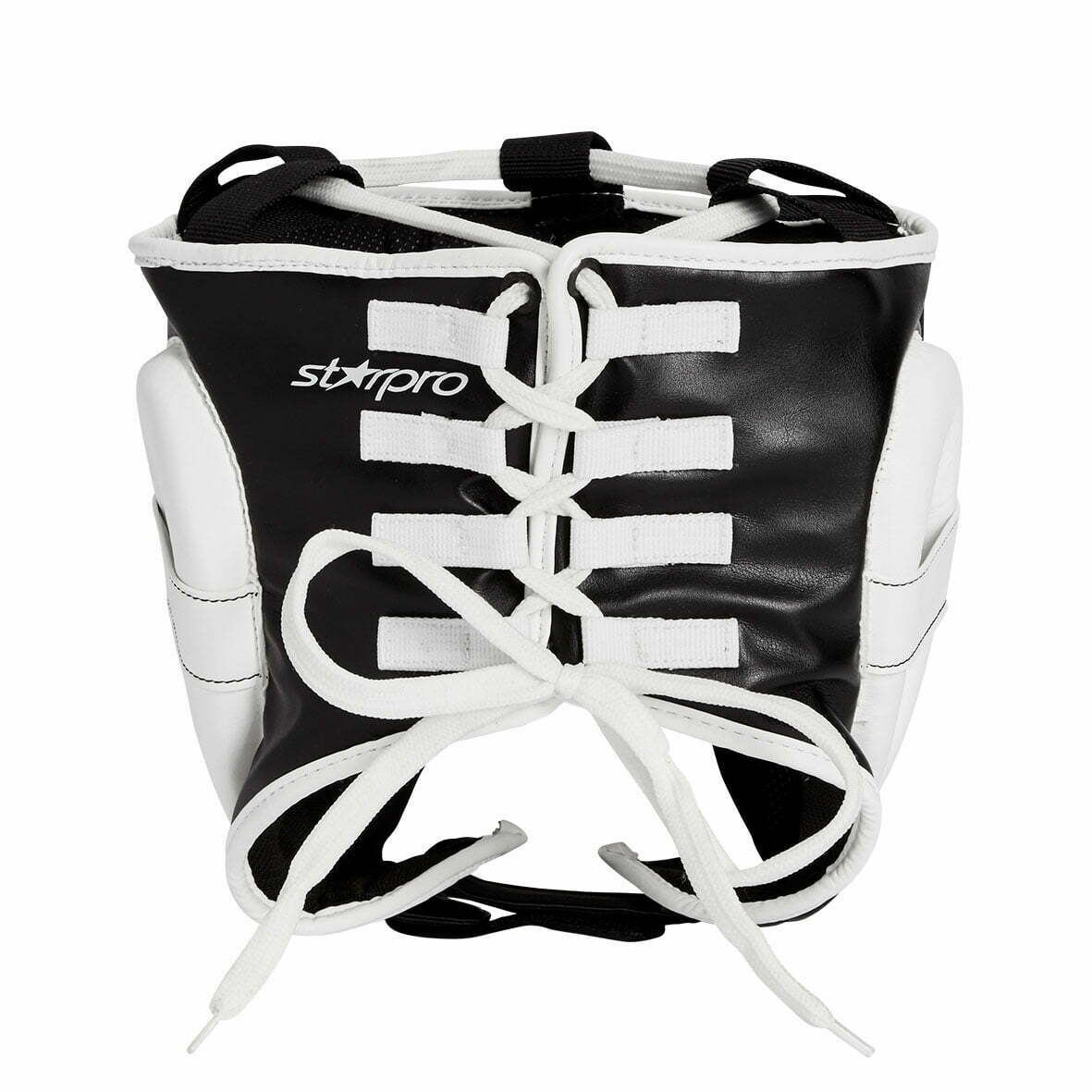 A Starpro Ultra könnyű fejvédő kiváló minőségben! Profi fejvédő magas minőségű PU5G műbőrből. Sűrű ShoXfoam párnázata maximális védelmet biztosít a kis súlya ellenére. Az arcvédő és az állvédő további profi védelmet biztosít a látótér korlátozása nélkül. Ez segít abban, hogy ne érjen váratlan ütés az ellenféltől. A fejvédő hátoldalán található fűző kiváló illeszkedést biztosít. A fejvédő belsejében található anyag egy csúszásmentes és gyorsan száradó szövet. Többféle méretben kapható fejvédő.
