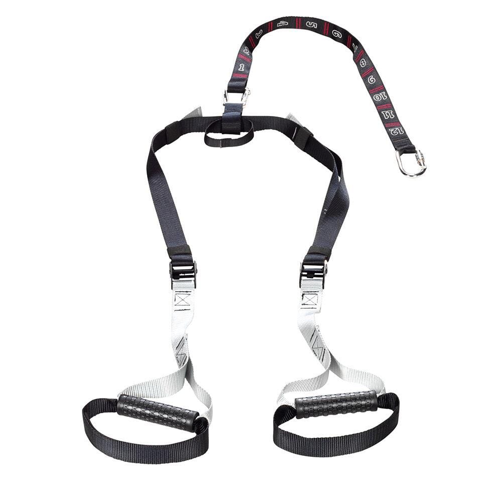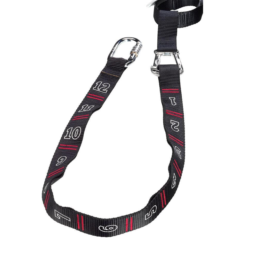 Kulcsfontosságú jellemzője a rozsdamentes acél karabiner, amelyet gyakran használnak a professzionális szabadtüdős mászásban, és amely maximális biztonságot nyújt. A számozott pánt lehetővé teszi a gyors magasságállítást, így különösen előnyös csoportos edzésekhez.