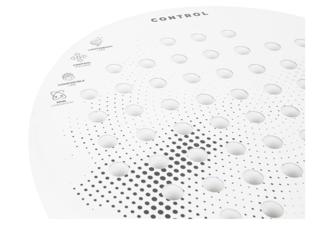 A magban található 13°-os EVA maghab alacsony sűrűségének és a puha üvegszálas felületnek a kombinálásával a Control Padel ütő tökéletes egyensúlyt ér el az erő és a kontroll között, lehetővé téve a kezdő játékosok számára, hogy könnyen elsajátítsák a padel alapjait, és magabiztosan és precízen fejlesszék játékukat.