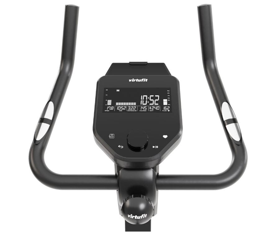 A kijelző tiszta és áttekinthető módon jeleníti meg a legfontosabb edzésparamétereket: sebesség, idő, távolság, pulzus és kalória. Ezek az adatok valós időben segítenek irányítani és optimalizálni a tréninget, legyen szó súlycsökkentésről vagy kondíció javításáról. A pulzusfigyelés különösen fontos a zsírégető zónák követésében, míg a távolság és idő segít a célok strukturálásában. A Virtufit 200i kijelzője ergonomikus elrendezésű, így edzés közben könnyen leolvasható, és azonnali visszajelzést ad az aktuális teljesítményről.