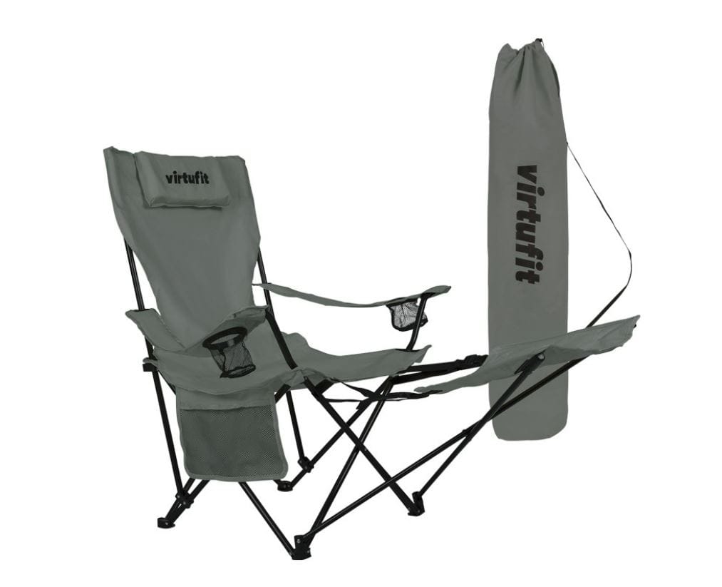 Virtufit Összecsukható kemping fotel lábtartóval és hordtáskával – szürke leírása