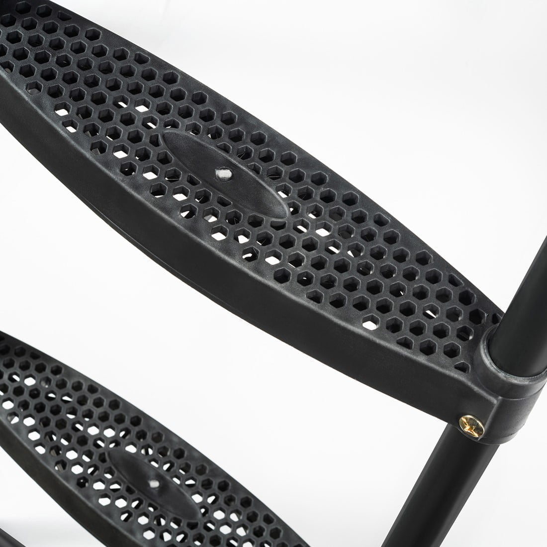 A Virtufit Premium trambulin teljes egészében fekete színben kapható. Ez azt jelenti, hogy a fémvázat, a lépcsőket és a biztonsági hálócsöveket is végigfestik. Ez modern és elegáns megjelenést kölcsönöz a trambulinnak, akár mint egy kiállítás a kertedben.