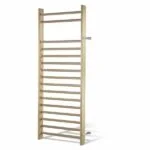 A Szobai bordásfal egy normál méretű bordásfal, mely iskolai, otthoni vagy edzőtermi használatra is ajánlott. Normál magassága 230cm mely befér általában minden otthonba. Amennyiben simán szeretnénk lógni a bordásfalon, úgy egy 180-190cm magas ember egyszerűen megteheti. Ez a magasság felett, már leérhet a lábunk. Fenyőfából készül, lakkozott felületű bordásfal. Igényesen megmunkált, optimális átmérővel rendelkező fokok. A csomag nem tartalmazza a felszereléshez szükséges tartó vasakat és tipliket, csavarokat!
