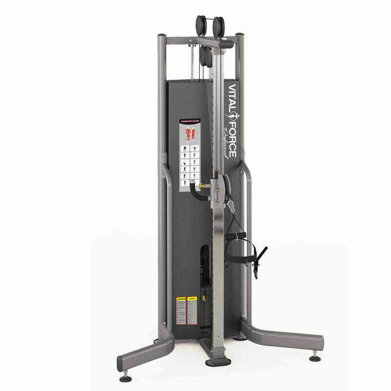 A Vital Force Professional HI-Low Pulley szimpla csiga egy magas minőségi edzőtermi gép. Biztonságosan használható csigás kondigép, mely alapgép egy profi edzőterembe. Használata nagyon egyszerű, szinte egy mozdulattal állíthatjuk a csigát / lehúzó állásait. Csapágyazott csigarendszerrel és extra erős burkolt acél sodronyokkal felszerelt kondigép. Mozgástartománya tökéletesen és akadás mentesen van kialakítva. Exkluzív dizájn, alumínium alkatrészek és fekete igényes padozattal bír. Stúdiókba fejlesztett modell, nagy teherbírással, igényes kialakítással! Kényelmes, ellenálló és erős párnázatának köszönhetően maximálisan felhasználó barát csigás kondigép. Könyen tisztítható és használható.